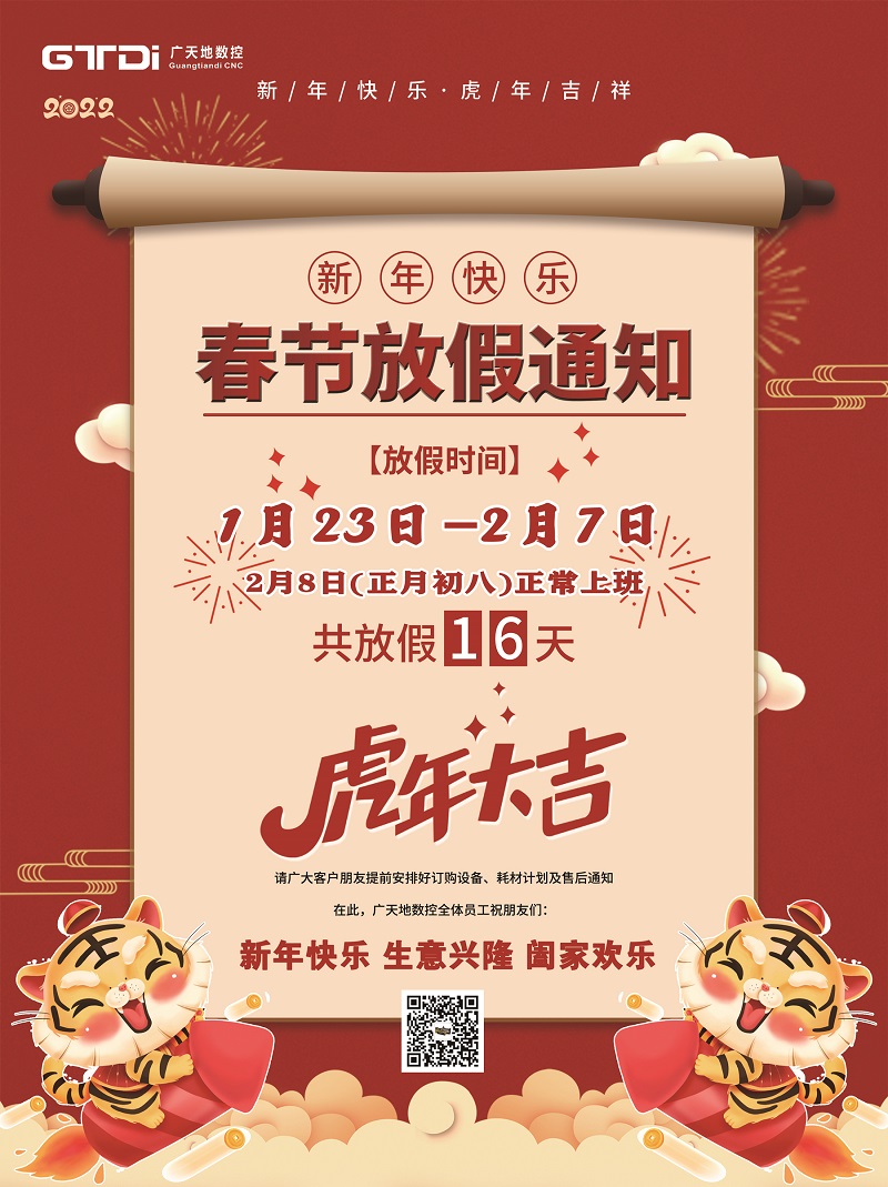 广天地数控2022年春节放假时间安排